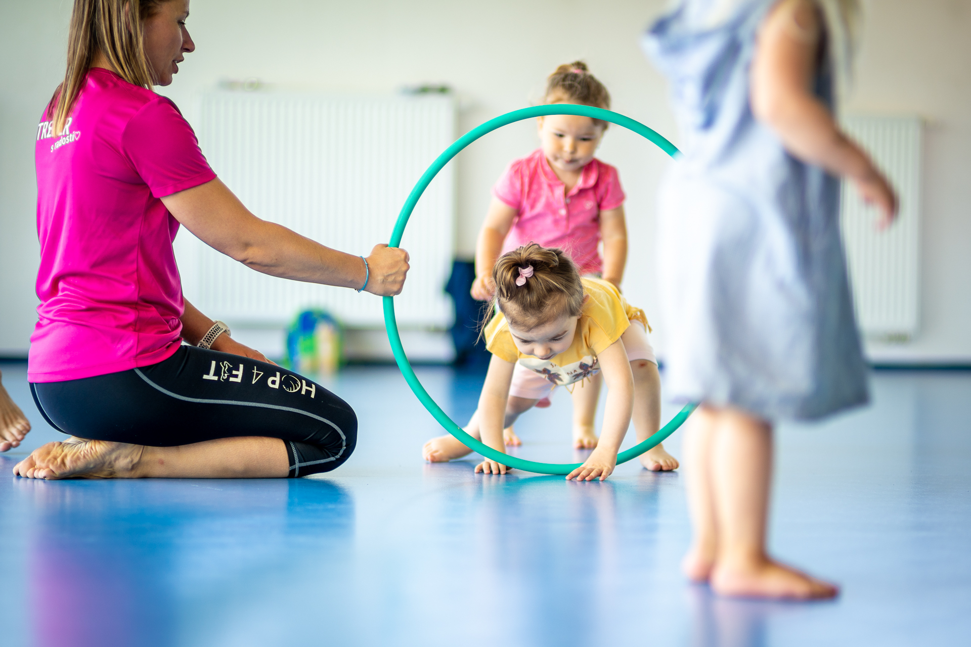 Celou lekcí zní hudba a říkanky, které děti velmi baví a motivují k činnosti.